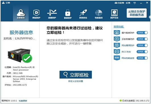 通常在站長服務器不安全因素導致網(wǎng)站出現(xiàn)掛暗鏈、掛廣告、掛盜鏈、掛馬是家常便飯,總在這上面花費我很多時間來處理服務器被hei問題,更不用說cc攻擊、ddos攻擊等等更是防不勝防,攤上這些安全問題,只能自認倒霉。如何省時省力的解決這些問題呢?如果公司有運維牛人或者使用的服務器租用或者服務器托管,恭喜你,你很幸運,如果沒有,最好的方法就是選擇一款實用的網(wǎng)站、服務器安全軟件。 這就是我今天要介紹的這款免費的服務器安全軟件:云鎖,我所以拿出來分享也不擔心說成是軟文,因為它目前是我的廣告主,我有必要關(guān)注關(guān)注廣告主的產(chǎn)品,如果是好產(chǎn)品我還是愿意分享的。另外它切切實實也是一款除“安全狗”之外唯一一款免費的服務器軟件了,屌絲站長沒有更多選擇。今天介紹它也是希望站長能多一個選擇: 1、界面功能版塊 ![]()