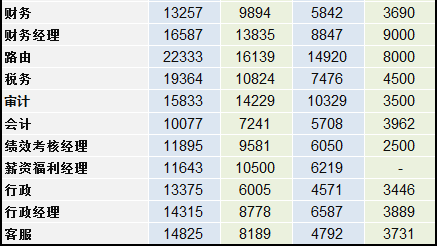在職能類職位整體數據中,最令人吃驚的還是前臺的工資……5年-10年工作經驗,居然能拿到高達33000元的月薪!居然比行政總監和HRD還高……難道做前臺5年后都升職變成老板娘了嗎(……這個,經過查證,是某些公司把前端職位當成了前臺了-。-……)