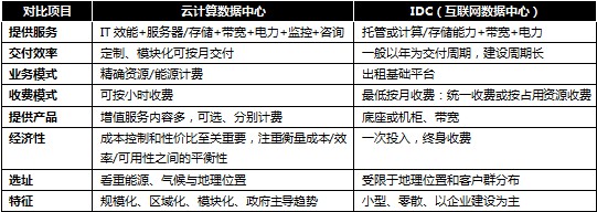 表一:云計算數據中心與IDC區別