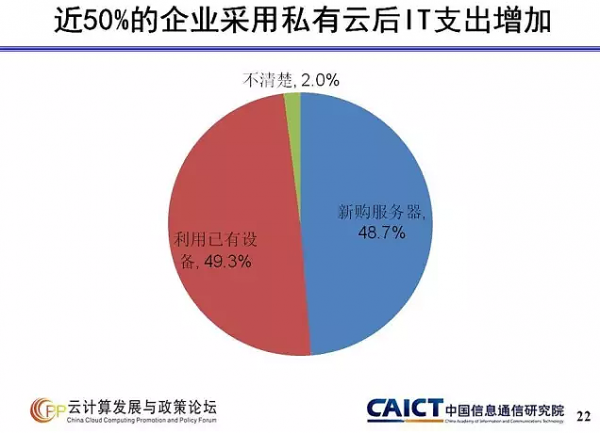 對于那些沒有部署私有云的受訪者,報告中指出,人員技術水平是影響他們部署私有云的最大障礙,企業(yè)的IT人員往往對私有云不夠了解,不同私有云解決方案間標準不夠統(tǒng)一。部分受訪者對私有云的部署周期、維護難度以及投資回報等方面抱有疑慮。而近50%的私有云用戶表示,自己的企業(yè)采用私有云后需要新添置
