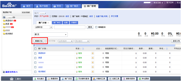 登陸推廣系統(tǒng),點(diǎn)擊搜索推廣“進(jìn)入”,選擇“推廣管理”,就可以開始新建計(jì)劃了。