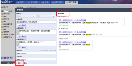 為了從不同側(cè)面充分展示企業(yè)產(chǎn)品或業(yè)務(wù)的優(yōu)勢,建議多寫幾個(gè)不同的創(chuàng)意。點(diǎn)擊“確定”保存了創(chuàng)意即可。
