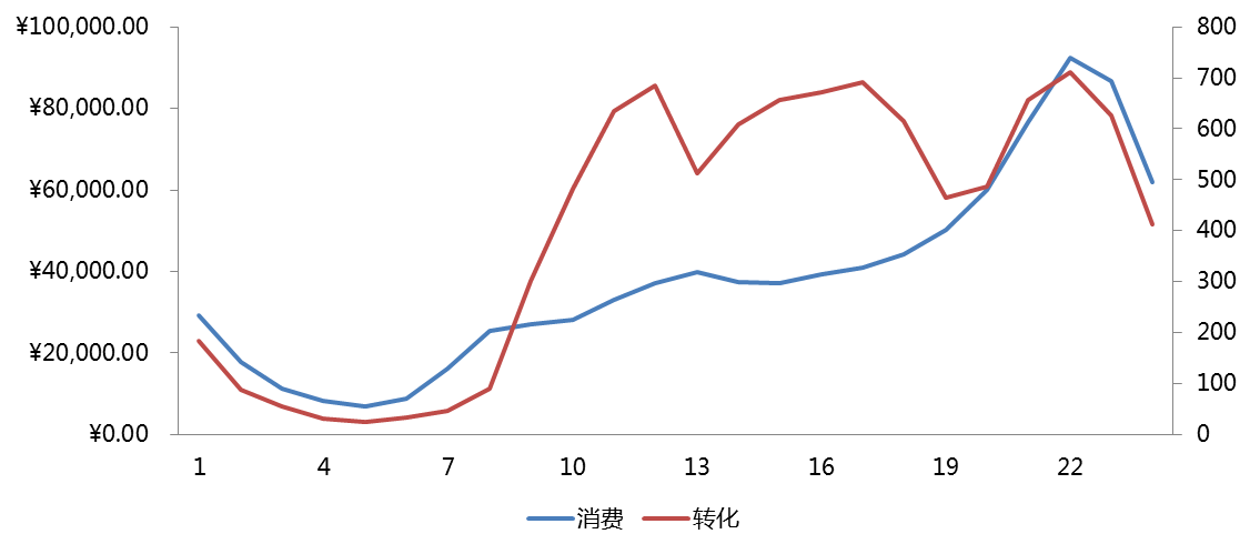 很多客戶朋友在剛剛開始接觸推廣的時候,對于推廣時間的限定是比較死的,例如:推廣時間等于上班時間、推廣時間沒有經過數據分析而拍腦袋決定、推廣時間隨著心情高興沒有規律性;筆者在接觸過的推廣客戶中,有以上幾種情況的新客戶占比非常大。對于推廣時間這個概念,很多客戶都認為僅僅是什么時候花錢,什么時候不花錢的概念。但是,在一個大數據盛行的時代,這樣的設置策略未免過于草率,這樣不僅可能造成流量小的情況,更有可能會對效果產生重大的影響。對于推廣時間的設置,我們需要從兩位維度對推廣時段的效果進行分析,首先是消費,其次是轉化量。