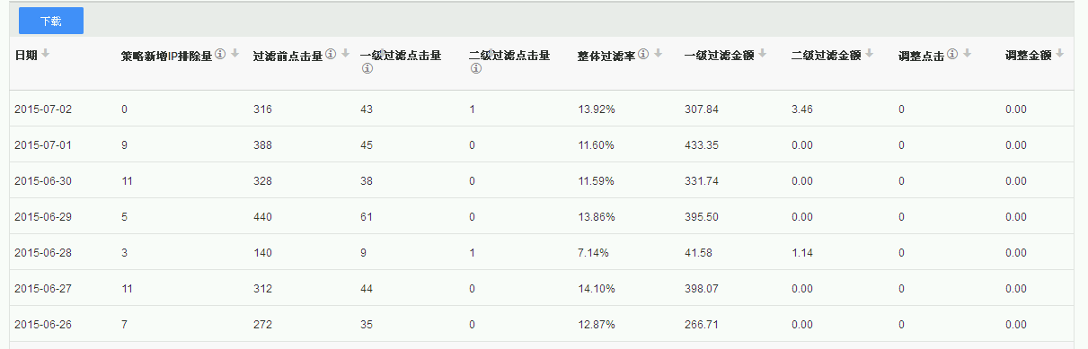 上圖為一賬戶中的7天的百度過濾點擊數據報告,我們可以看到,如果自己沒有進行【百度商盾】中的IP策略屏蔽,我們就會浪費很多的費用,而這些費用帶來的用戶都不是我們的目標人群。