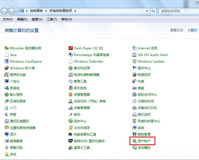 3、因?yàn)閣indows 7 遠(yuǎn)程桌面連接需要設(shè)置計(jì)算機(jī)密碼,下面我們?yōu)橛?jì)算機(jī)設(shè)置密碼。點(diǎn)擊控制面板,選擇用戶帳號(hào)打開(kāi)。進(jìn)入下一步,如下圖: