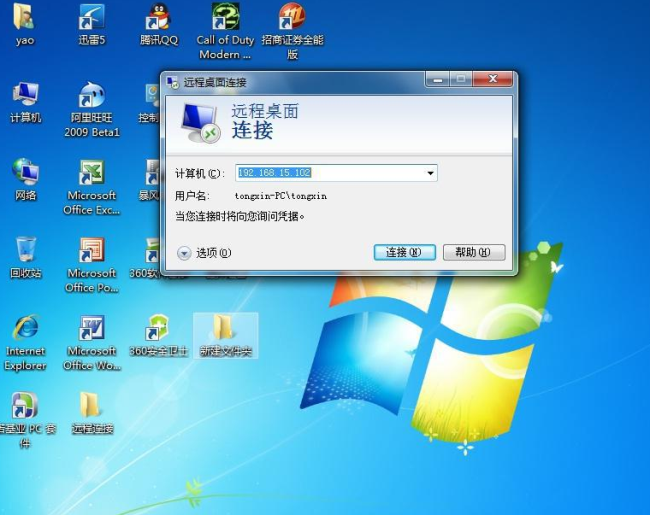 8、在彈出的對(duì)話框中輸入需要進(jìn)行windows 7 遠(yuǎn)程桌面連接的計(jì)算機(jī)的IP地址,然后點(diǎn)擊“連接”,進(jìn)入下一步。(本機(jī)IP地址可通過(guò)本地連接的屬性獲取)