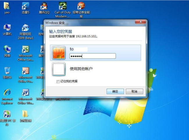 9、在新彈出的窗口中輸入已經(jīng)設(shè)定好的賬戶和密碼,點(diǎn)擊“確定”即可。如下圖: