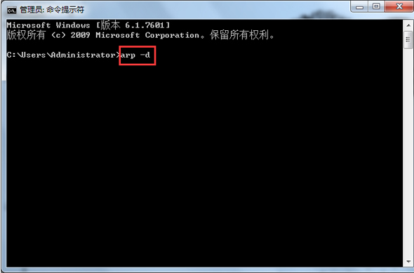 8、在dos命令下,運行“arp -d”命令。
