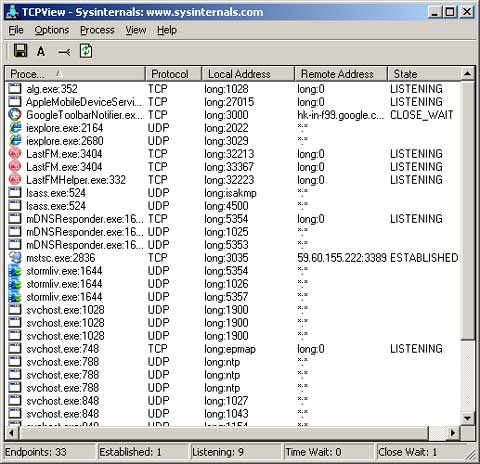 TcpViews是一款免費的端口和線程監控工具,可以列出當前所有TCP和UDP端口的進程清單,包括本地和遠程地址的TCP連接,其實和系統命令netstat類似,不過是GUI界面的,使用方便,占用資源少,默認字體在中文環境下很小,需要手動修改。在服務器上運行的話,默認刷新時間不要用默認的1秒。