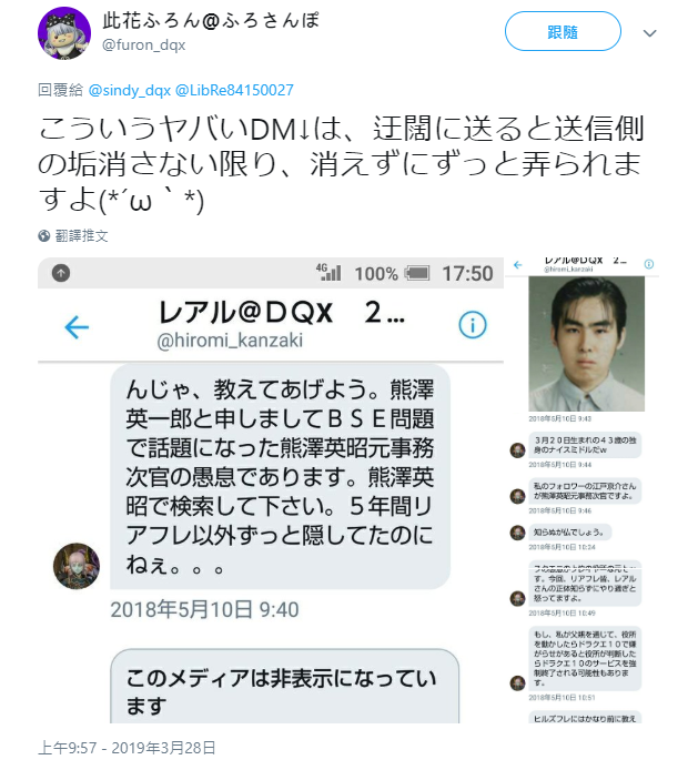 此案引起了許多日本網友的關注,有人甚至找到了疑似死者熊澤英一郎的推特賬號。有網友貼出了該賬號曾炫耀自己的家庭有從政背景的私信截圖: