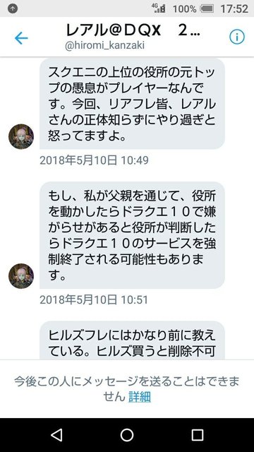 根據截圖內容,該賬號稱自己是因瘋牛病問題下臺的熊澤英昭的兒子,并威脅收信方稱,如果他通過父親驚動政府,強制停止網游運營也是有可能的。