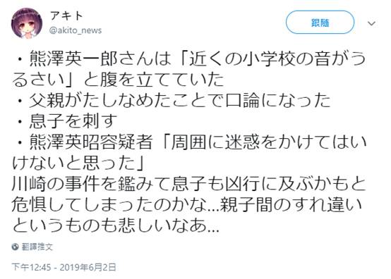 “……是不是因為川崎刺殺小學生事件而擔心自己的兒子會行兇呢……父子就這樣擦身而過了,好悲傷……”