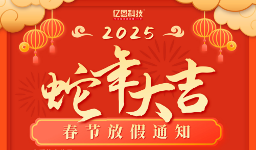 值此新春佳節(jié)來臨之際,億恩科技全體員工真誠感謝您長期以來對我們的關注和支持,在此預祝您新春快樂、闔家歡樂!按照國家規(guī)定,結合公司實際,經(jīng)研究決定,將2025年春節(jié)假期安排公布如下: